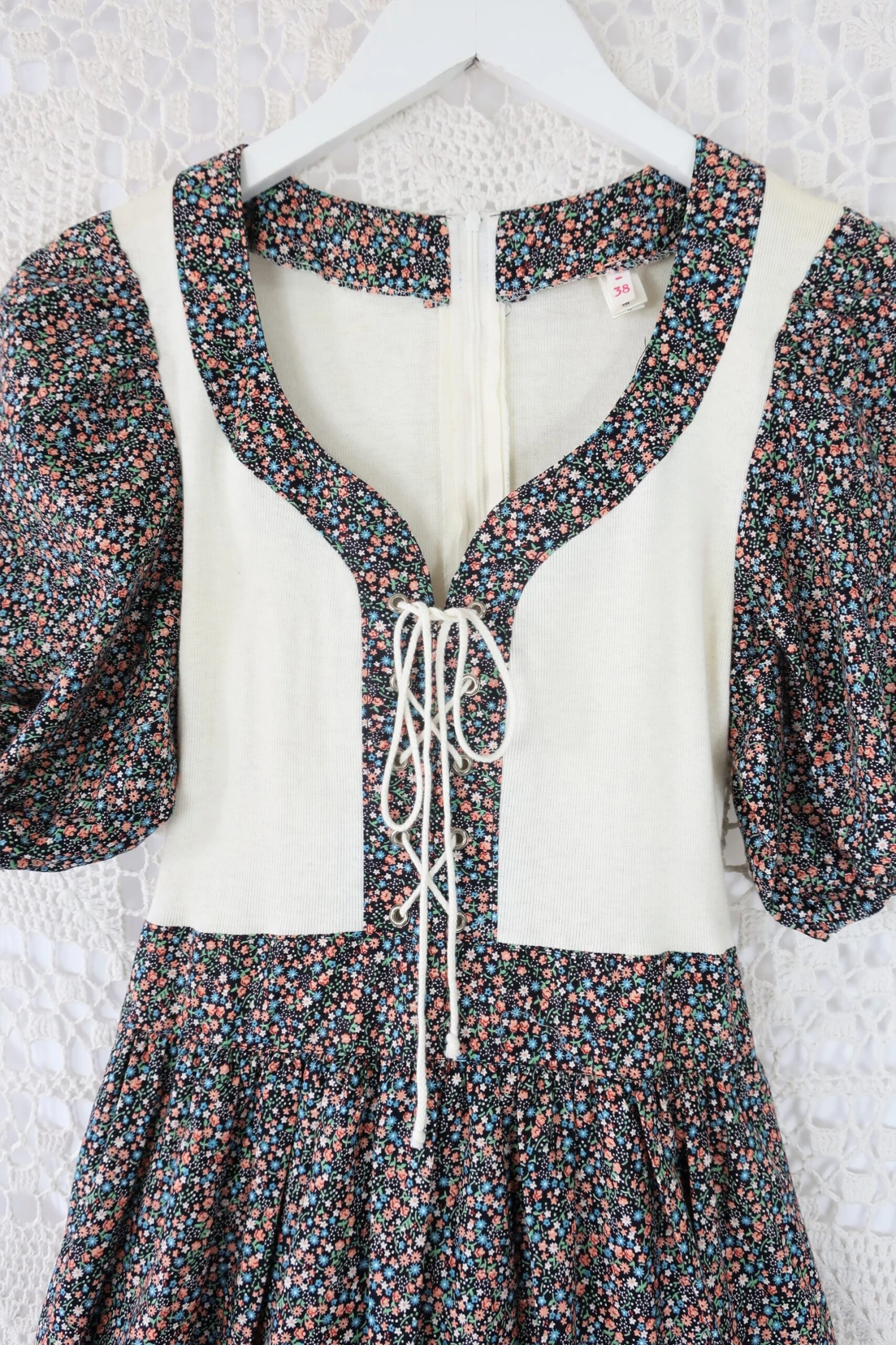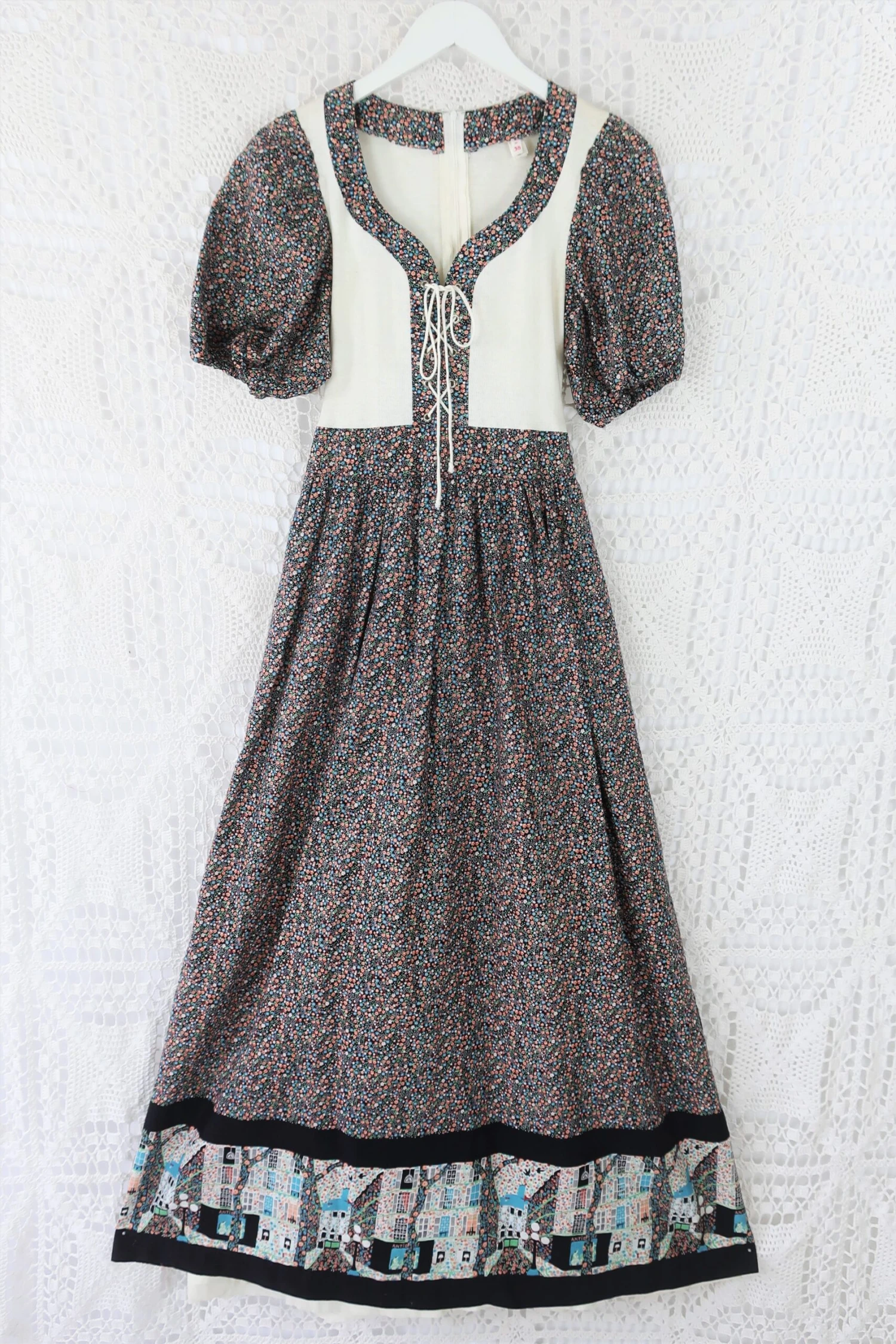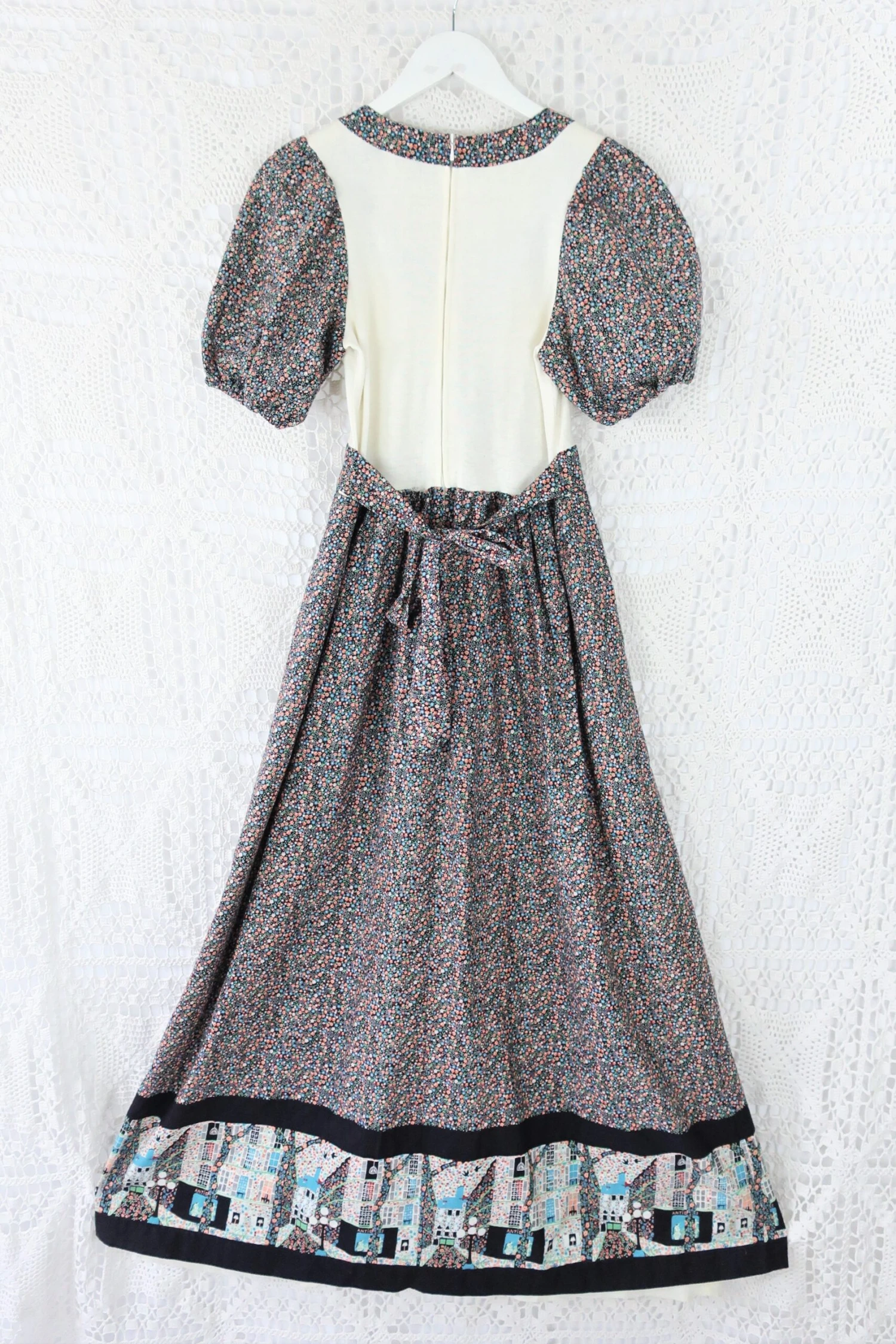 This amazing ‘Little House on the Prairie Dress’ has a beautiful illustration on the hem, perfectly subtle and perfectly placed, with a gorgeous floral pattern strewn over the rest of the dress.