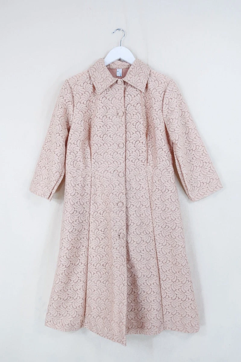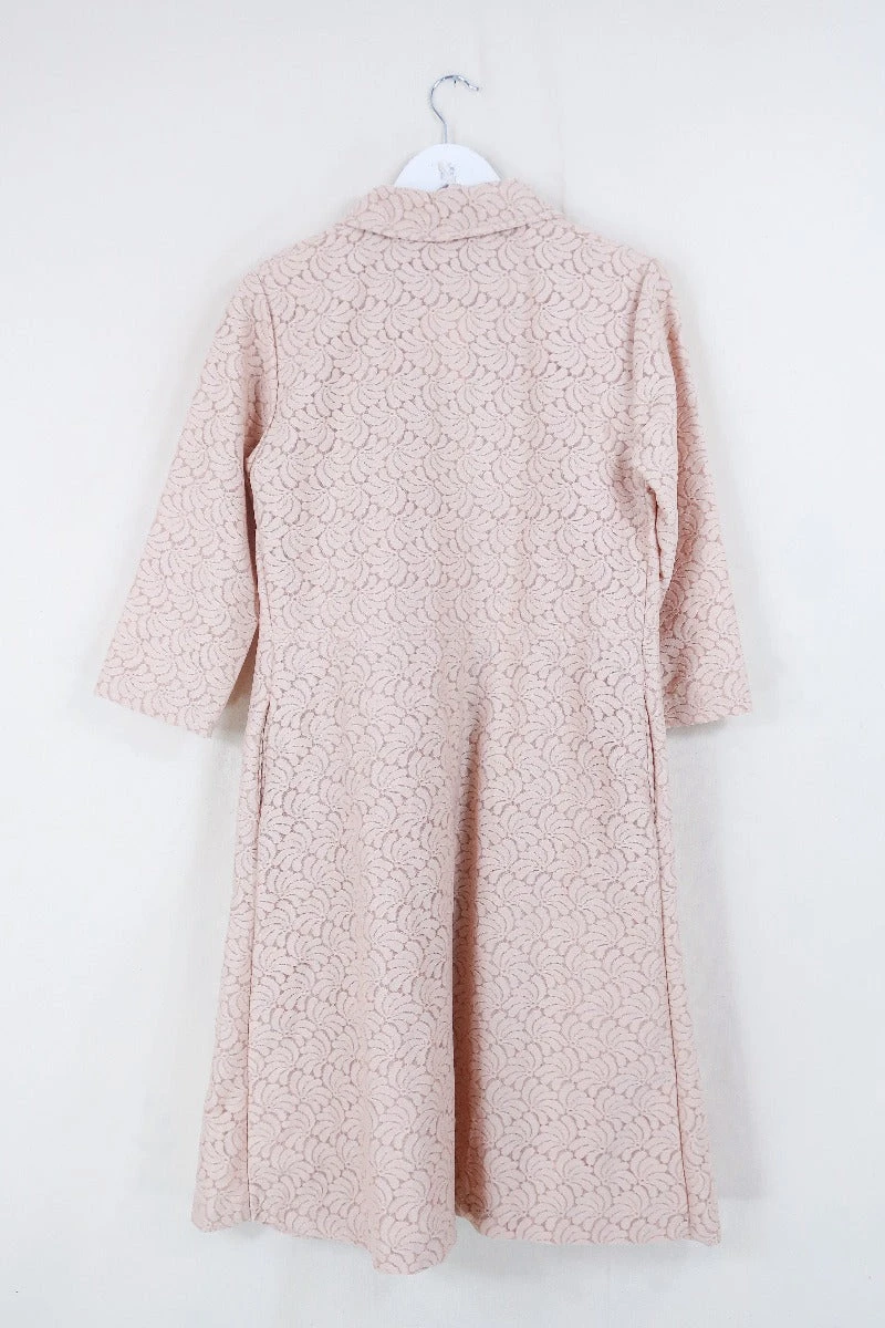 Chic pale petal pink retro embroidered jacket dress. Wear as a dress and pair with a cute vintage belt or wear as a light layer for a pop of colour and glam! Also has handy pockets!