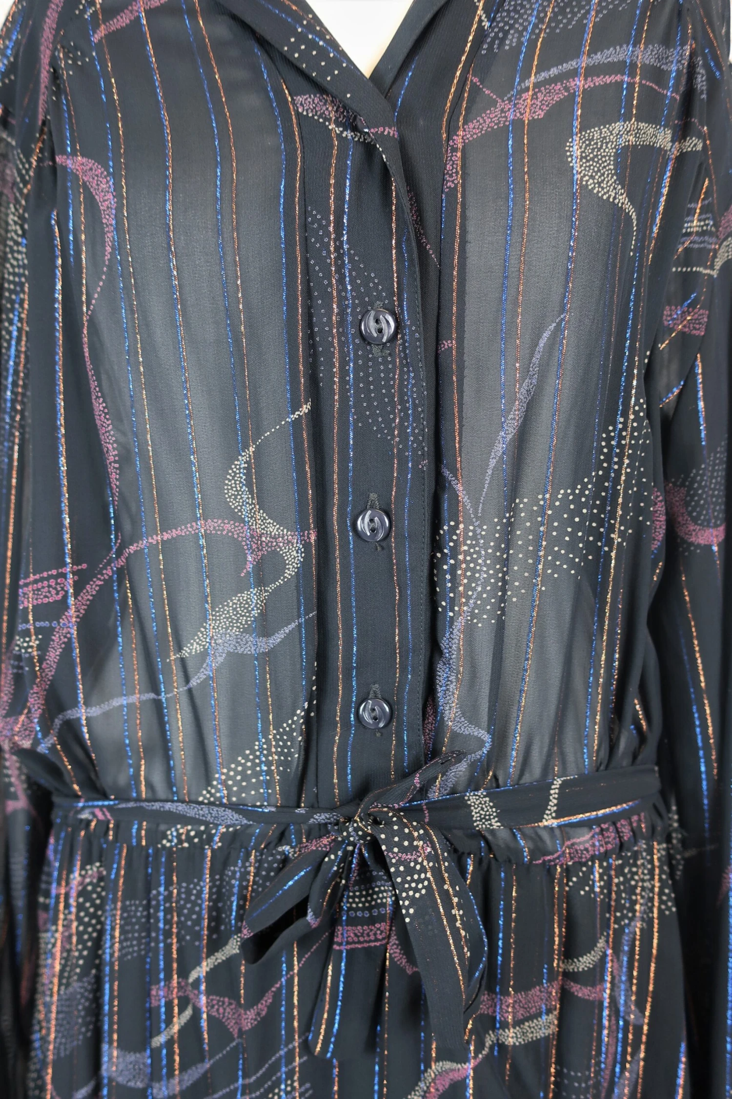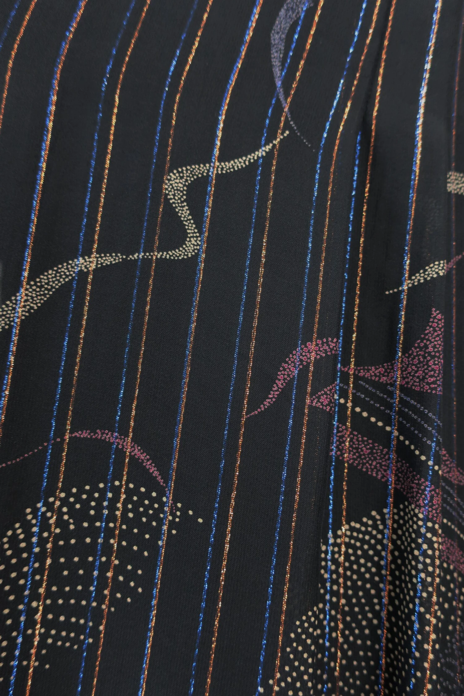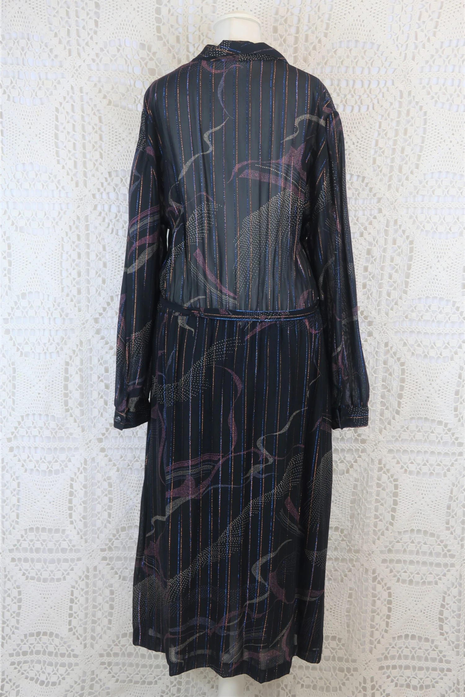 The sheer black, combined with the muted pattern and metallic thread, gives this dress the movement and intrigue of a distant nebula