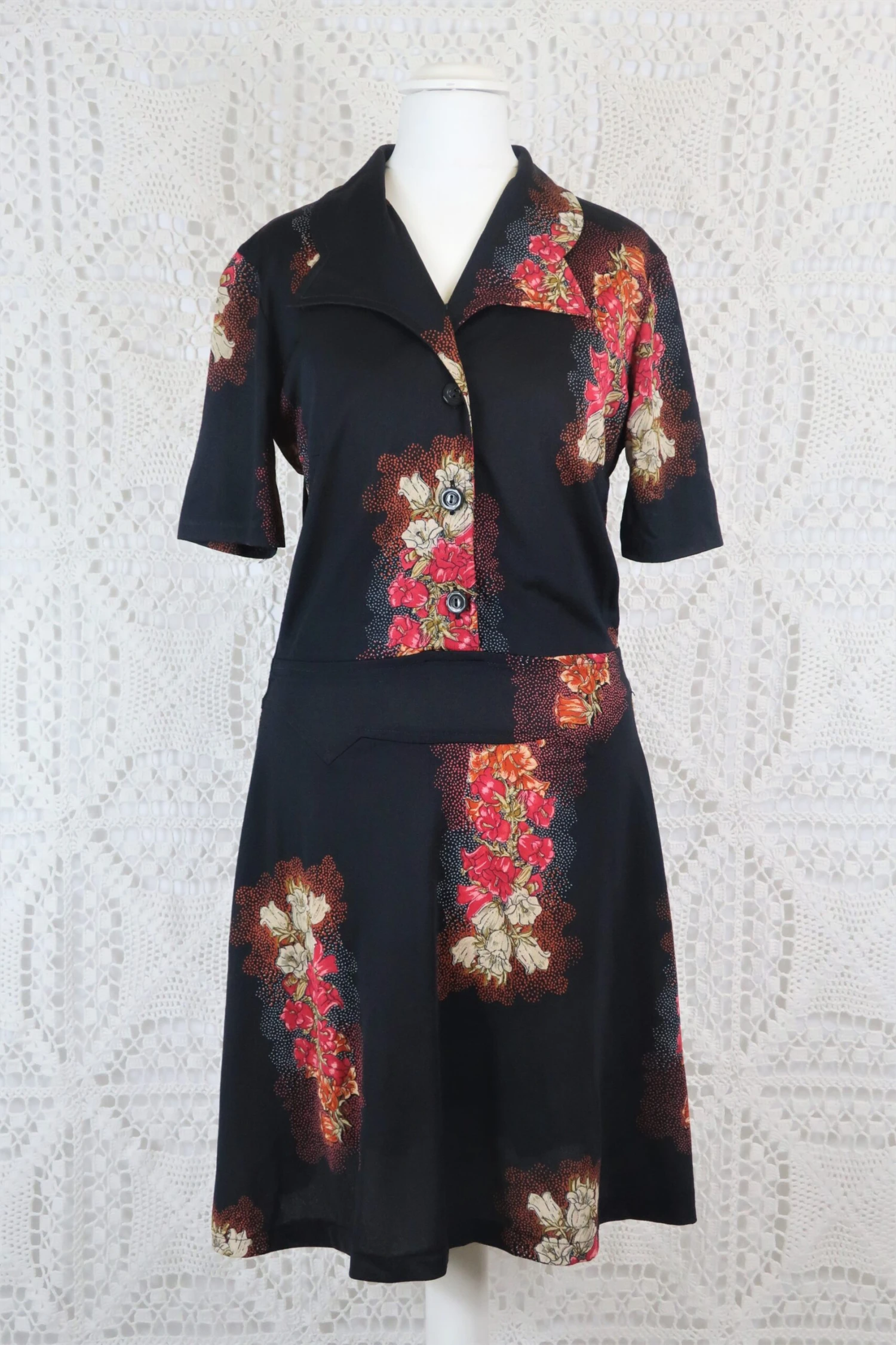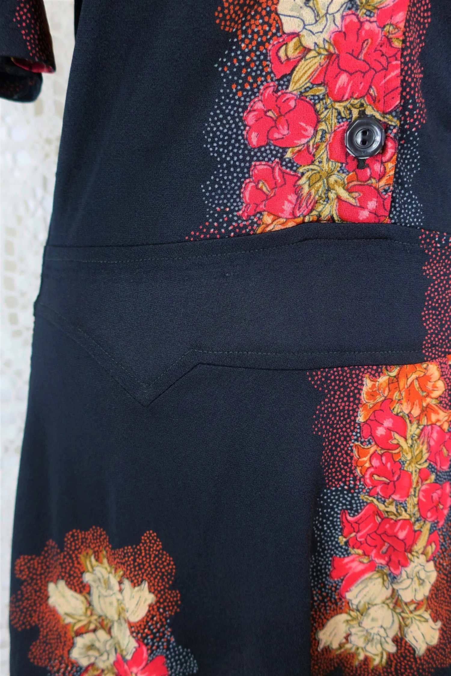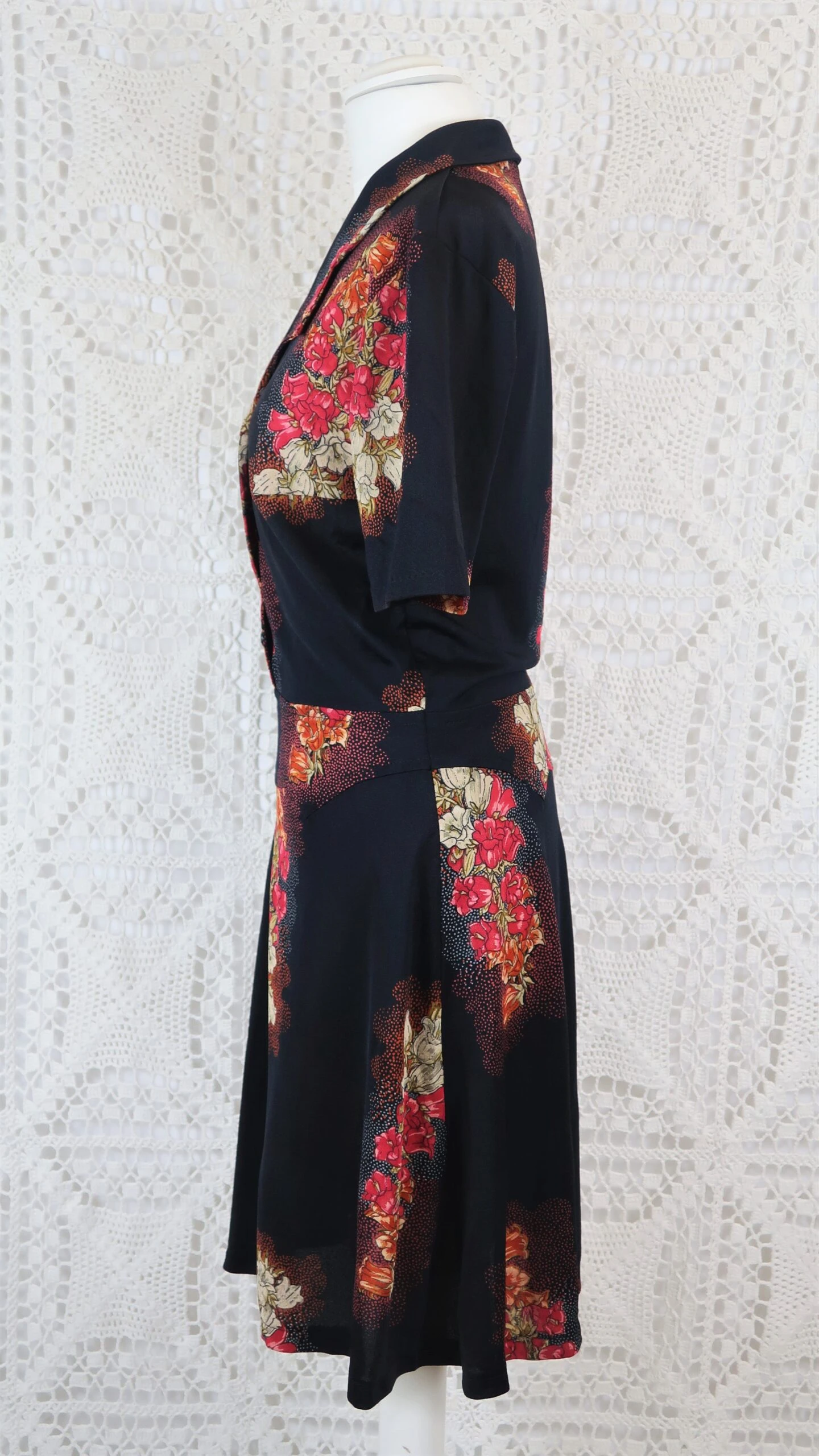 Gorgeous vintage mini dress with winged peter pan collar, sculpted waistband & colourful floral print