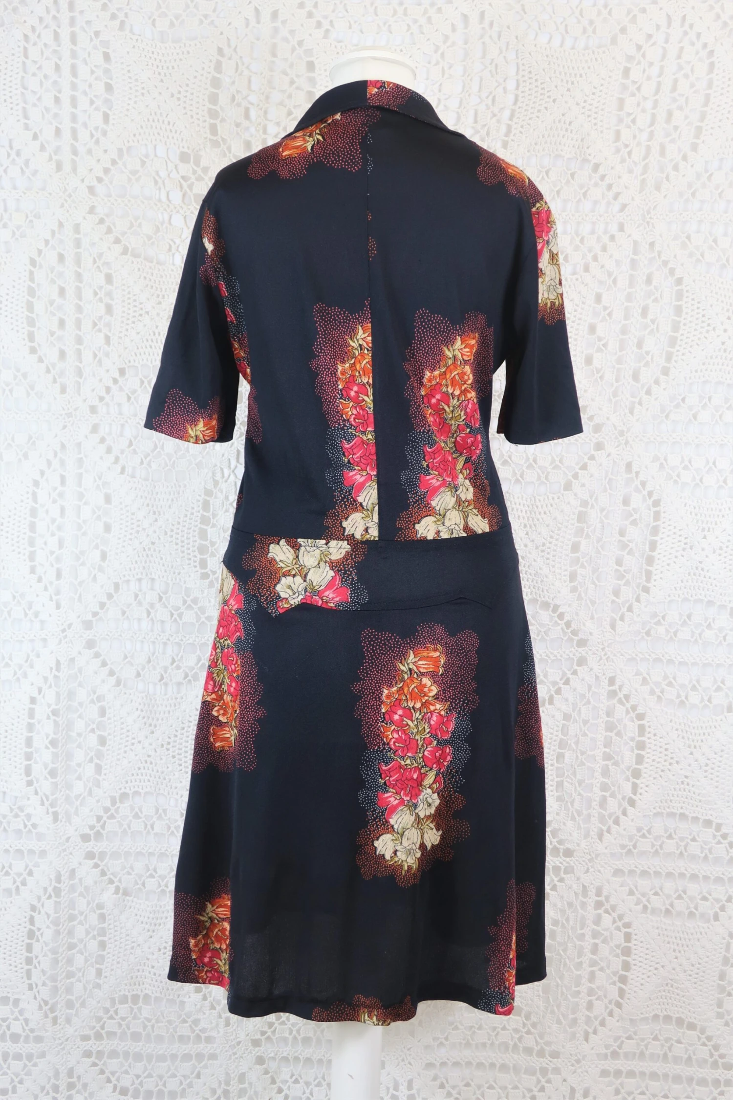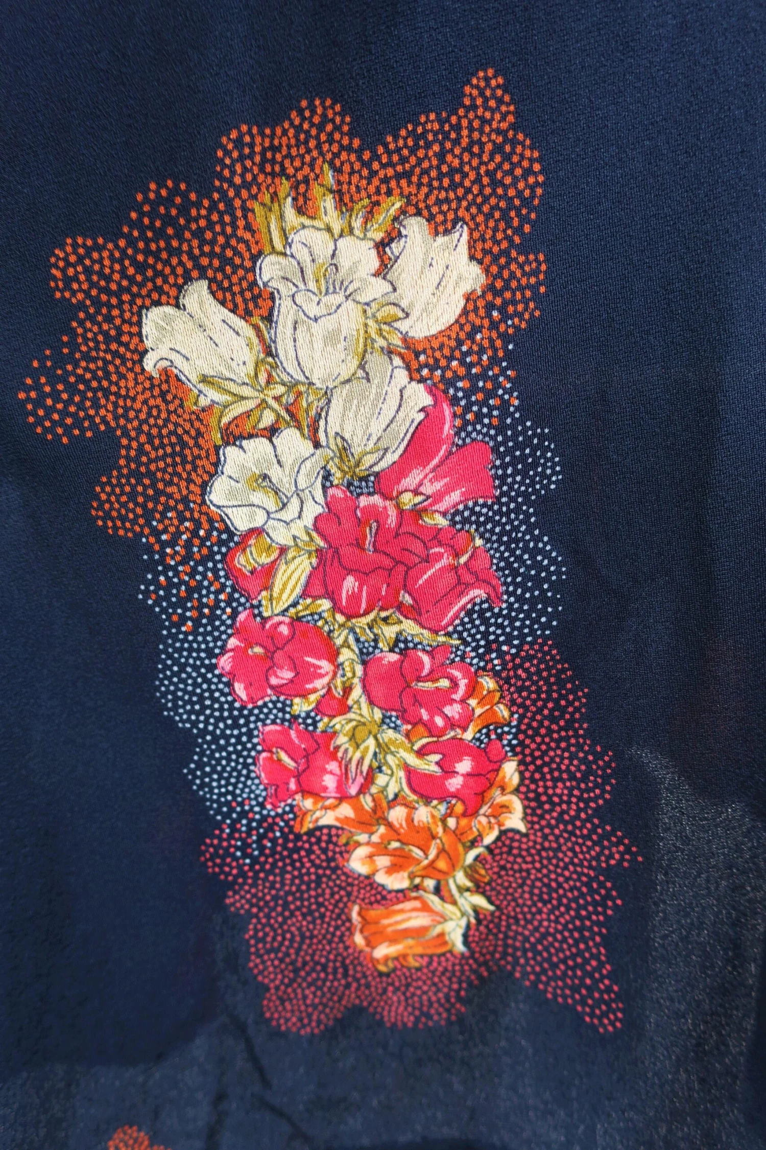 Gypsophila Midi Dress – Vintage Indian Sari – Ultramarine & Tangerine Floral Motif – Free Size L/XL