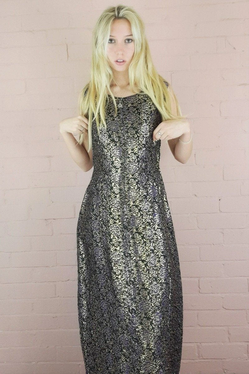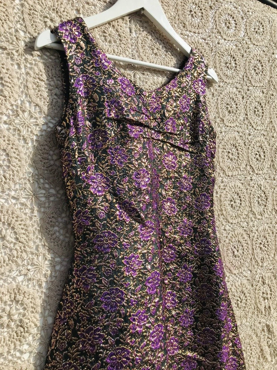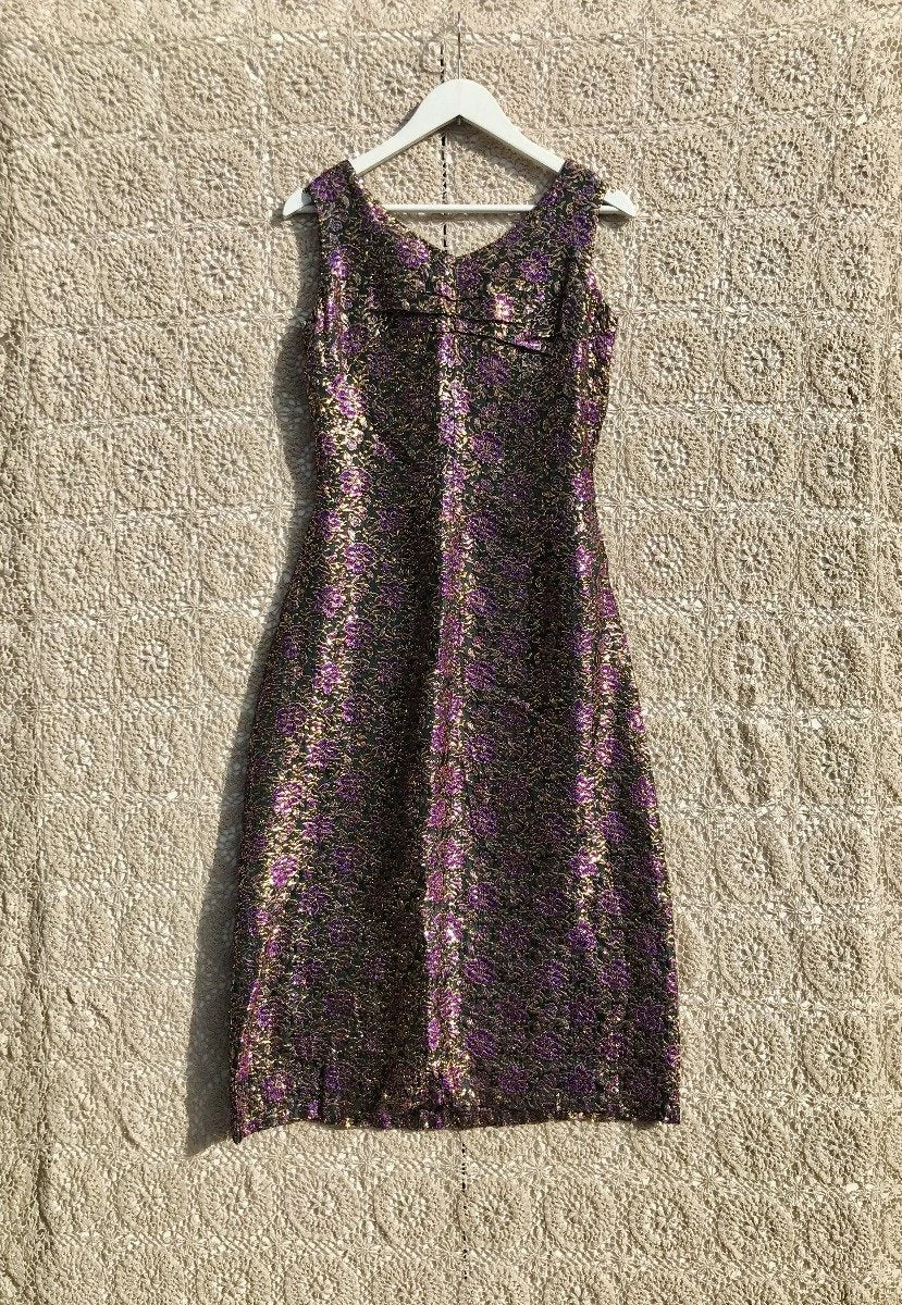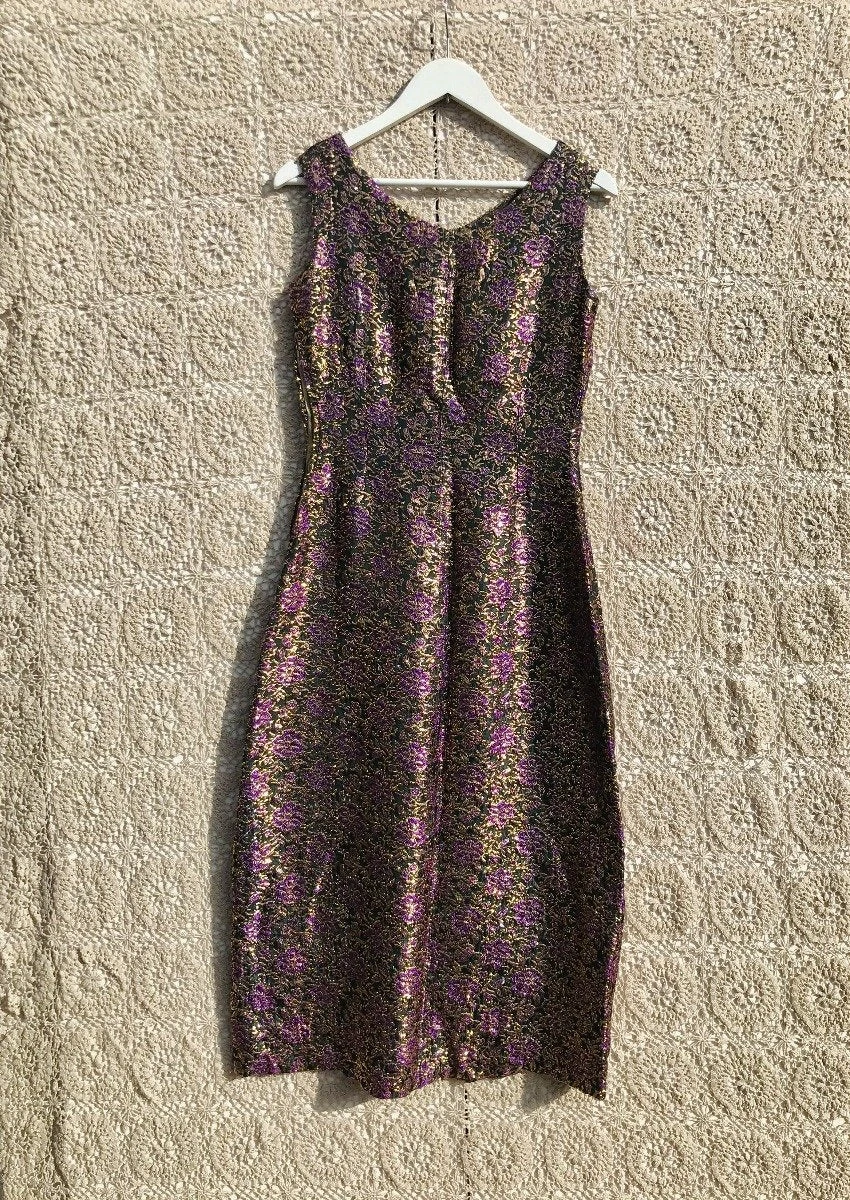 Sparkle floral tunic pencil dress with purple and gold stitching
