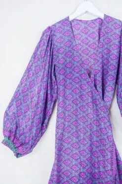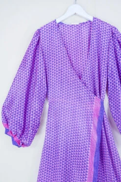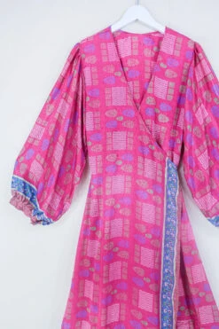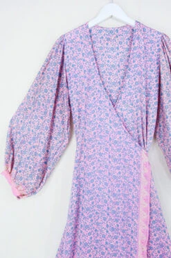 Lola Long Wrap Dress – Blush Pink & Lavender Floral Print – Vintage Indian Sari – Size XXL